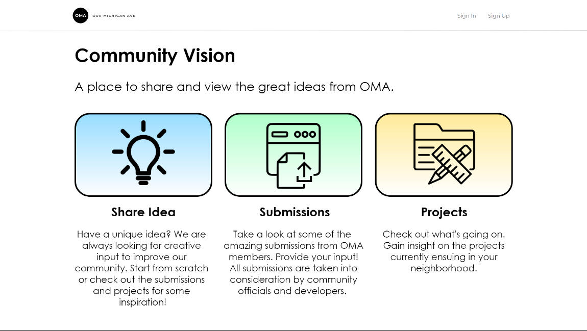 The redesign of the "Our Michigan Avenue" website was a collaborative effort that resulted in a visually appealing, user-centric, and community-driven platform. Through weeks of research, iterative wireframing, and engagement with residents, we successfully delivered a high-fidelity wireframe that captured the essence of the community's desires. The project taught us the importance of user research, collaboration, and adaptability when working on complex design projects.Moving Forward: