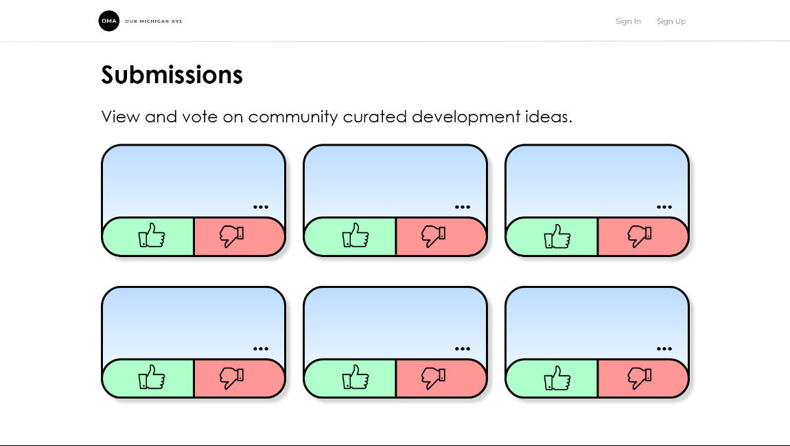 The "Our Michigan Avenue" website redesign project exemplified our group's commitment to user-centered design and community engagement. Through weeks of research, iterative wireframing, and a poster presentation to over 50 residents, we successfully created a high-fidelity wireframe that encapsulated the desires of the community. This experience enhanced our skills in research, design, and communication, preparing us for future endeavors in delivering impactful digital experiences that serve the needs of diverse audiences.
